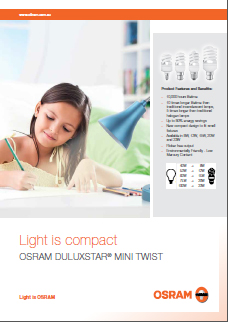 OSRAM‘S new DULUXSTAR MINI TWIST CFL range is more compact, which means it‘s smaller spiral design makes it suitable for all types of light fittings.