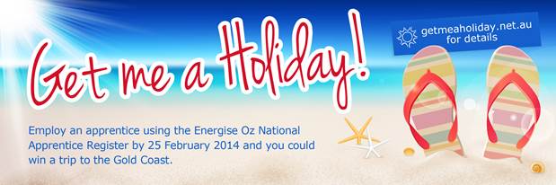 Register to receive a FREE list of pre-assessed aspiring electrical apprentices, employ one of them by 25th February 2014 and go into the draw to win a holiday.